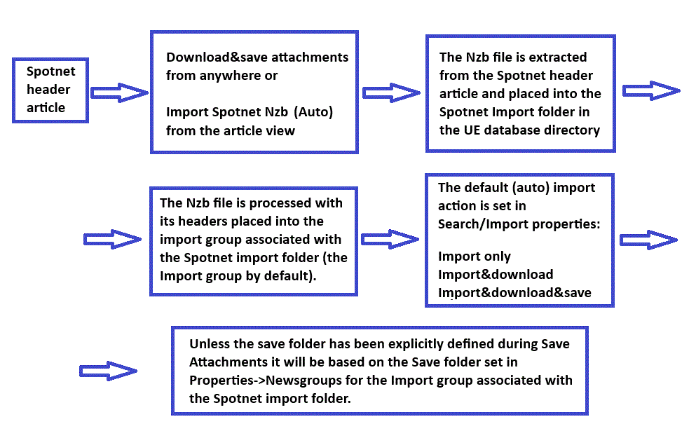 Note 1: The Spotnet import folder is associated by default with the Import group and the association can be redefined (the Spotnet import folder in the UE database directory will be automatically created after the first Spotnet import or it can be created manually)