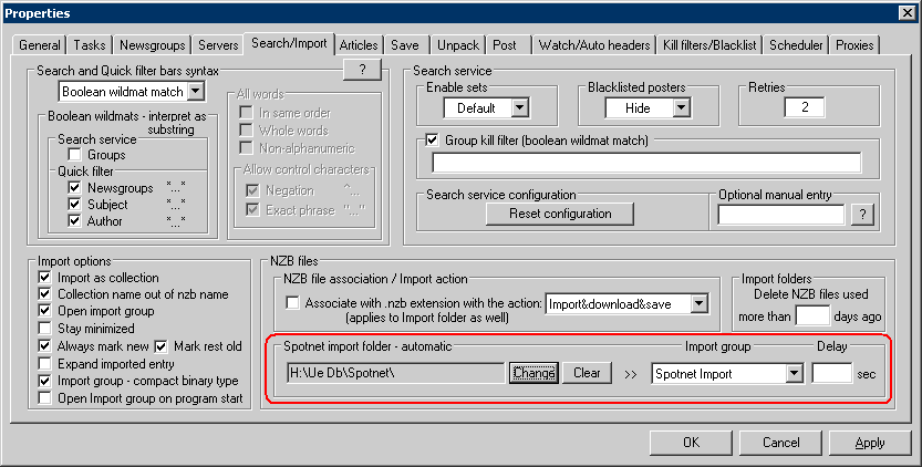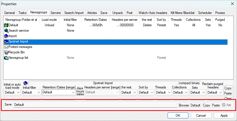 Note 2: The default Save folder for the associated import group can be set in Properties->Newsgroups