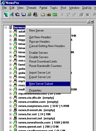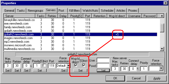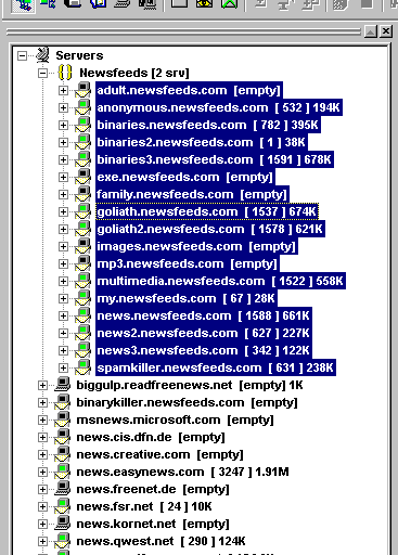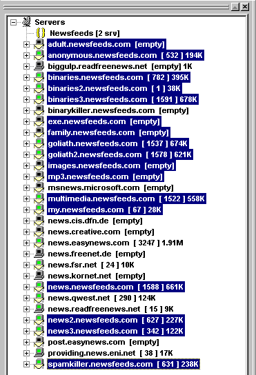 An example describes the situation when a Usenet provider limits the number of servers at a time