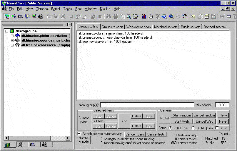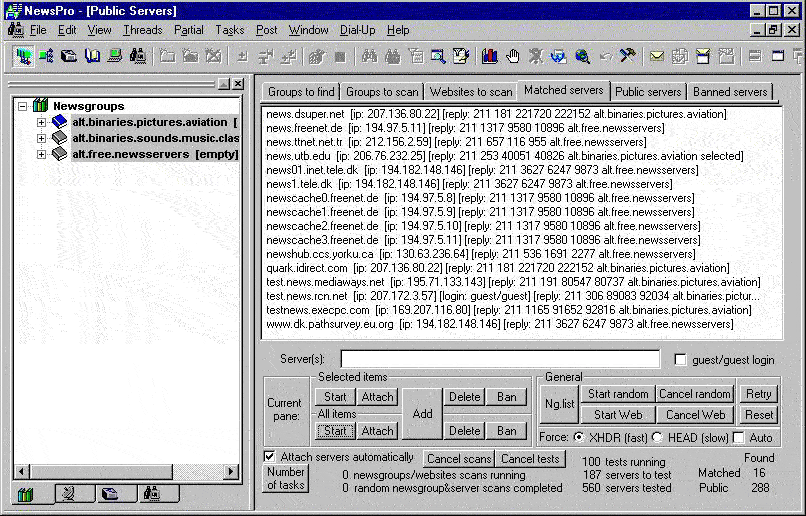 whether they are public. Thus there are scan tasks to scan newsgroups/websites for servers and