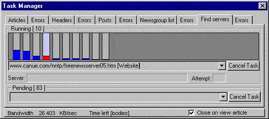 lists of newsservers. It extracts server names. Asynchronously it tests the servers to determine
