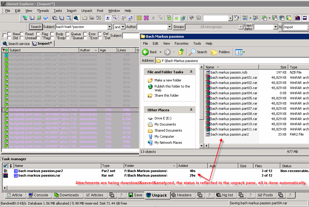 Can you give me screenshot of the unpack entry with status column shown of an affected rar file and corresponding par2 file?